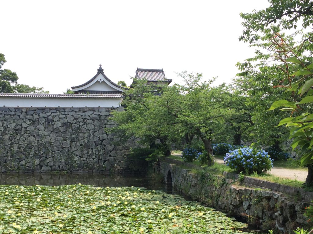 Today I was riding my bike next to Ohori Park and I noticed many beautiful lily pads / water lilies (睡蓮)growing and floating in the pond next to the old castle gate. The new plants and flowers growing next to the old stone wall and wooden gate is very beautiful.